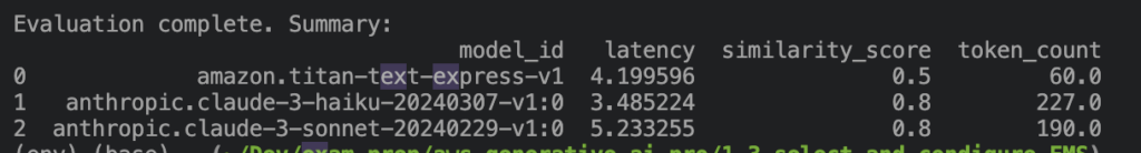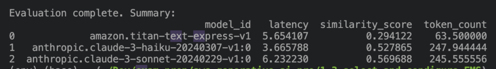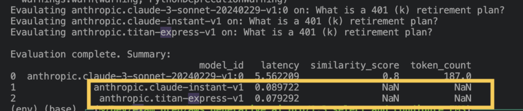 It turns out that the Titan Express model was mistyped; it is distributed by Amazon, not Anthropic. And Anthropic Claude Instance has reached end of life. So Claude 3 Haiku was used as a replacement. With those two adfustments new similarilty scores were created: